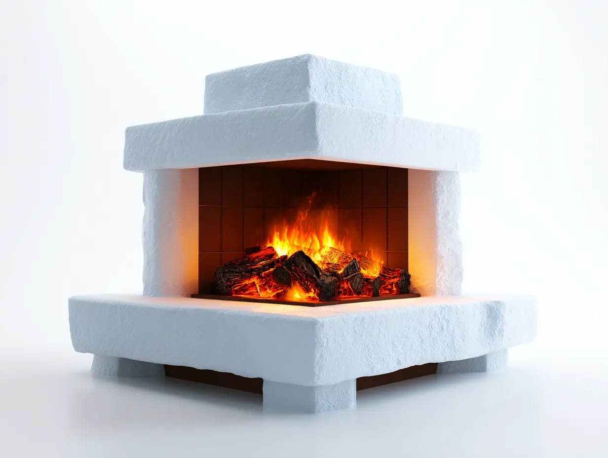 Kamin - Stein-Beton - 120 x 80 x 96 cm - Weiß - Moderner Stil