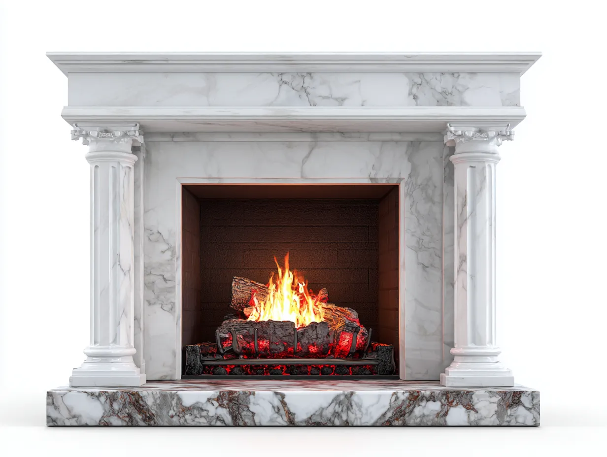 Kamin - Marmor - 104 x 38 x 112 cm - Weiß - Klassischer Säulenstil