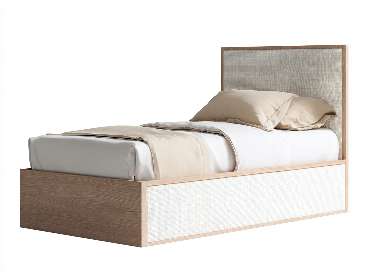 Einzelbett - Holz-Stoff - 212 x 104 x 108 cm - Natur-Beige - Modern