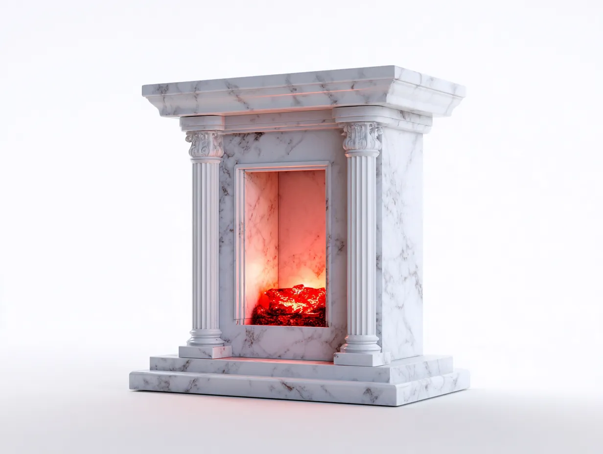Kamin - Marmor - 132 x 42 x 118 cm - Weiß - Klassischer Säulenstil