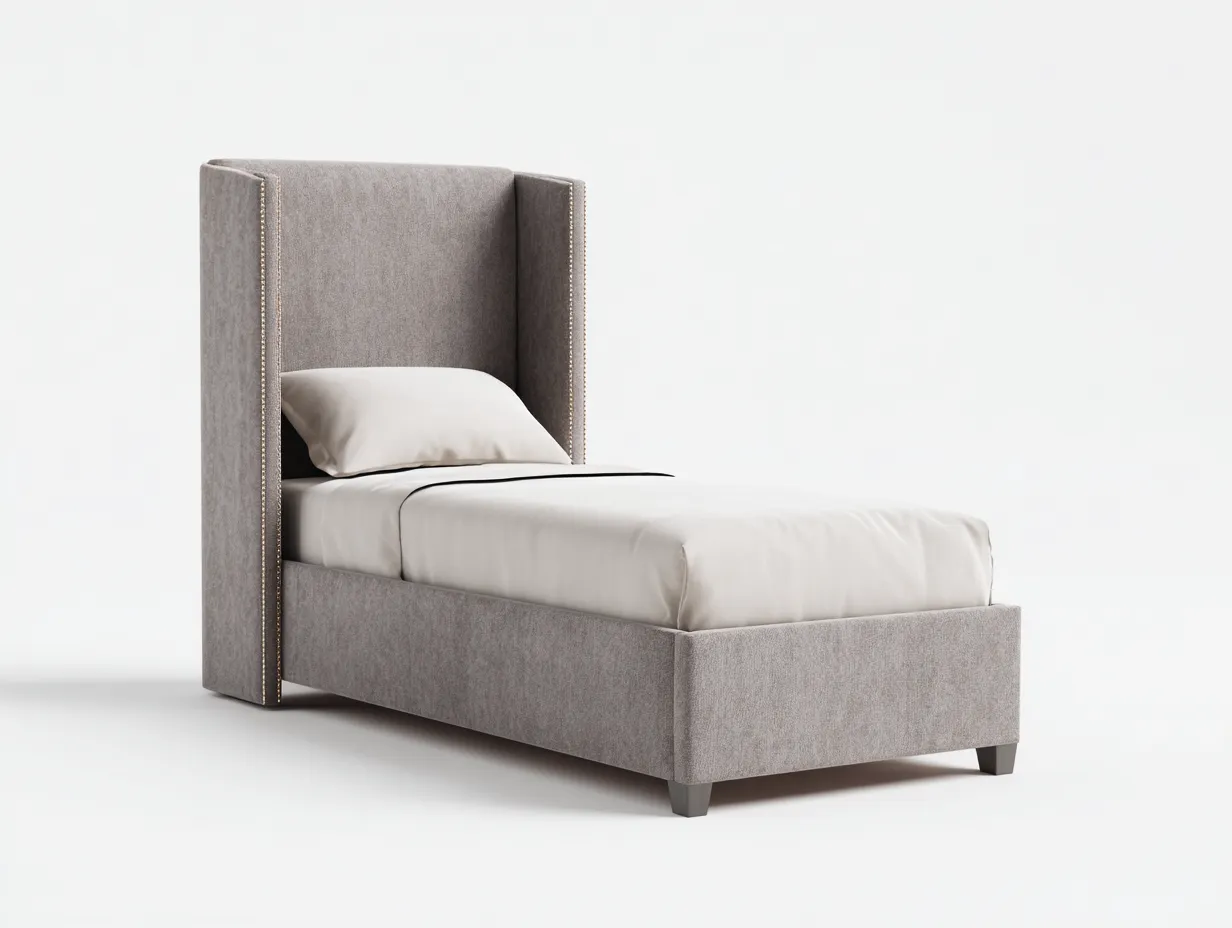 Einzelbett - Stoff-Holz - 207 x 99 x 103 cm - Grau - Modern