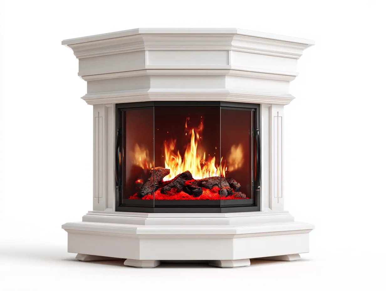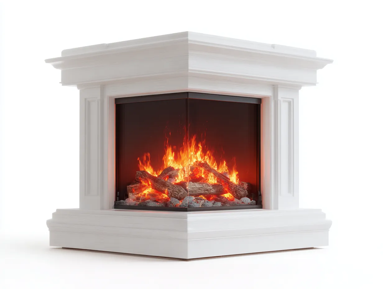 Kamin - Holz-Glas - 126 x 74 x 104 cm - Weiß - Moderner Stil